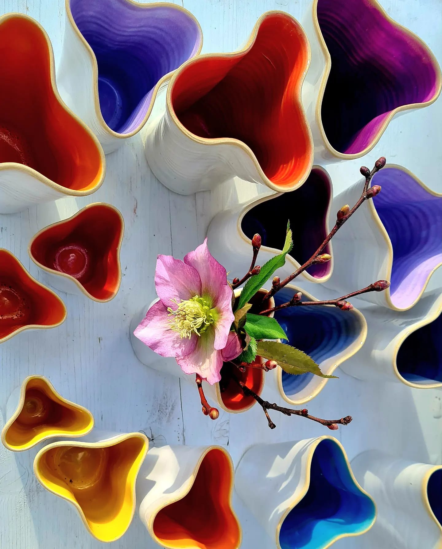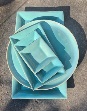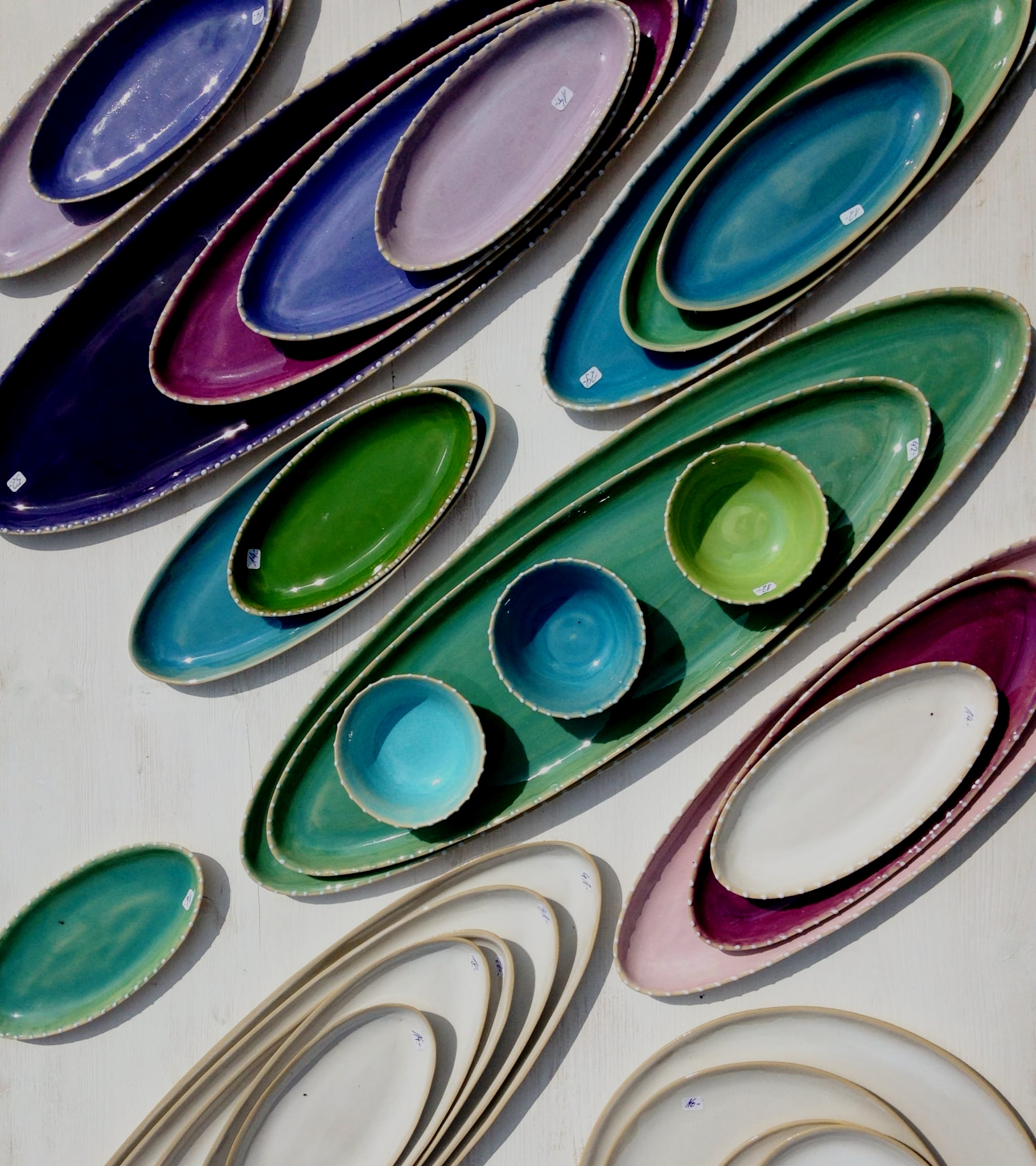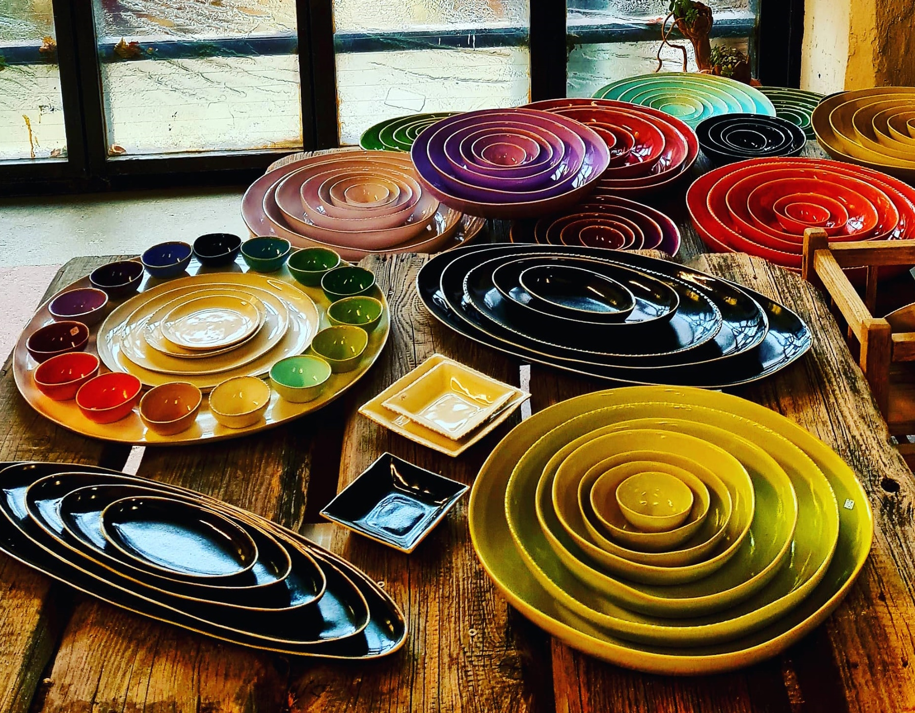 Farbenfrohes Gebrauchsgeschirr für alle Bedürfnisse, stapelbar und spülmaschinenfest. Frostfeste Gartenkeramik. Design und manuelle Herstellung von Alexandra Holzer und ihrem Team.