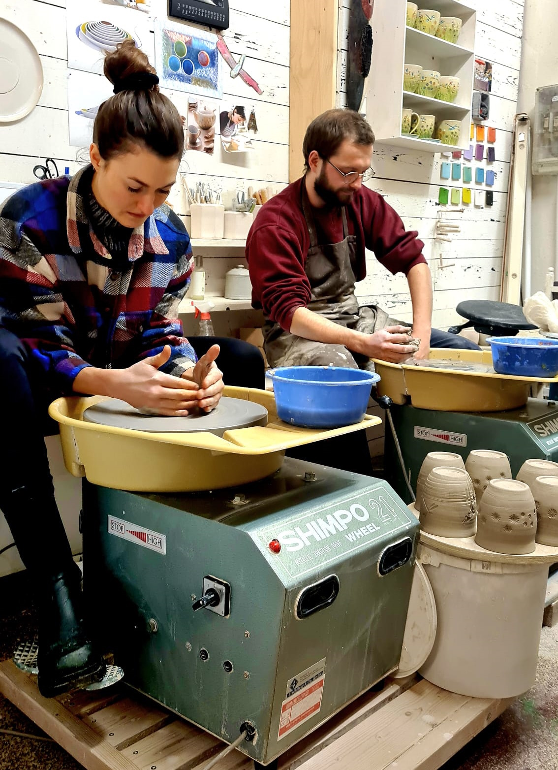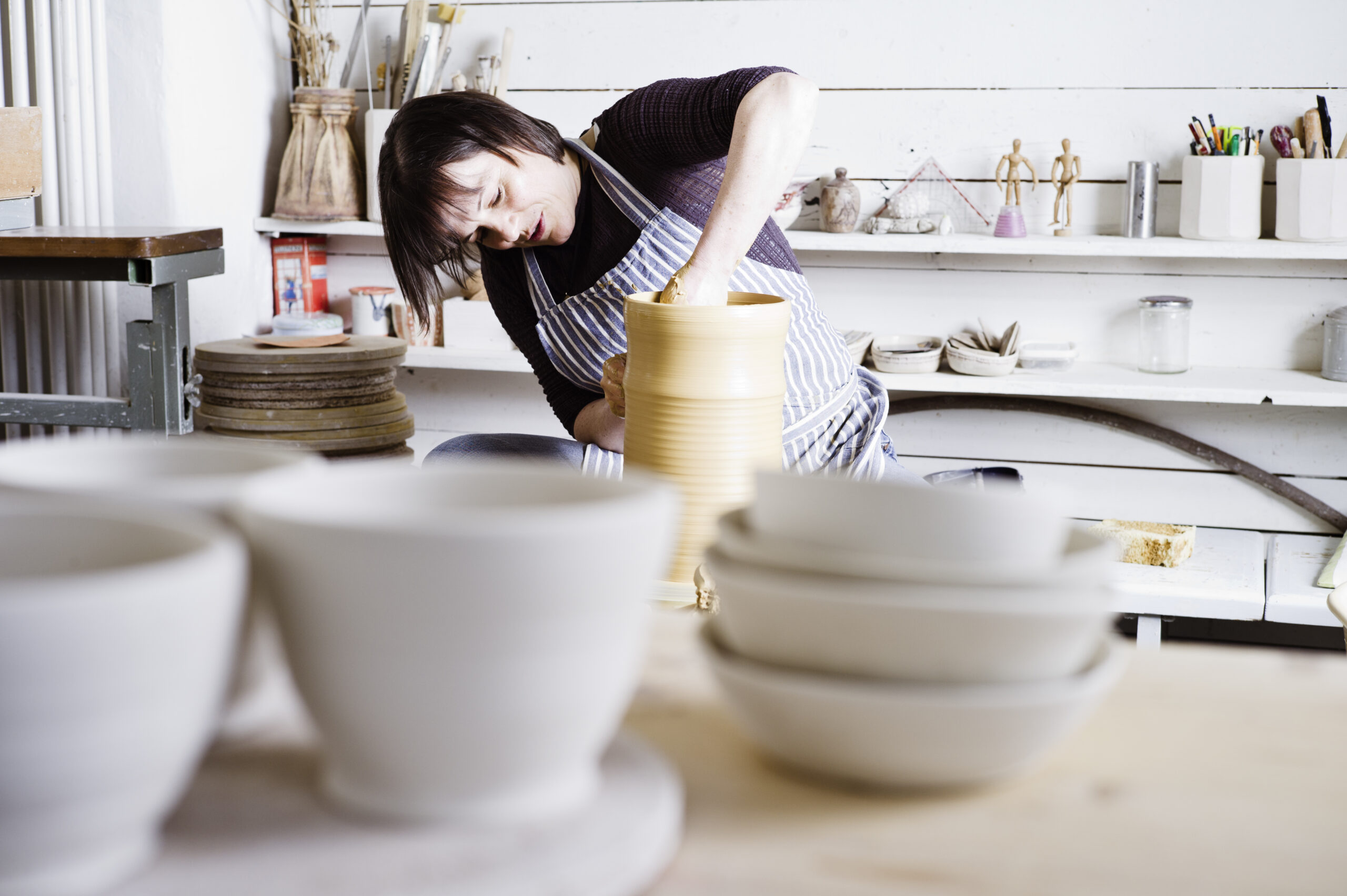 In meiner Werkstatt biete ich Kurse in Aufbaukeramik und an der Drehscheibe an.