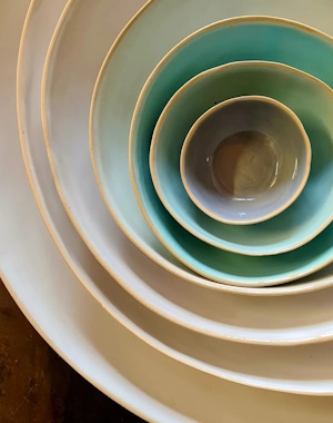 Schon als Kind faszinierte mich das Material Ton, das ich beim Graben im Garten fand. Während meiner dreijährigen Ausbildung an der Keramikfachschule Landshut lernte ich den richtigen Umgang mit Ton. Ich fing Feuer und entschied, mich künftig ganz diesem schönen, alten Handwerk zu widmen. In den ersten Jahren meiner Selbständigkeit fertigte ich Großplastiken und Baukeramische Arbeiten. Mein weiterer Weg führte mich in die Foodfotografie. Über 10 Jahre arbeitete ich intensiv an Geschirrsonderanfertigungen für Werbe- und Kochbuchproduktionen. Diese Arbeit öffnete mir die Augen für das, was mir wichtig erscheint. Ich wollte Gebrauchsgeschirr fertigen, das das alltägliche Leben schöner macht. Daraufhin entwickelte ich aus meinen gesammelten Erfahrungsschatz Geschirrserien, die sich rhythmisch vergrößern und ineinander stapelbar sind. Mein Geschirr gibt es in 15 verschiedenen Farben. Die Vorstellung, dass jeder Farbe etwas mit uns macht gefällt mir. Ich bin zufrieden, dass mein Geschirr dem Lebensmittel den Wert gibt, den es verdient.